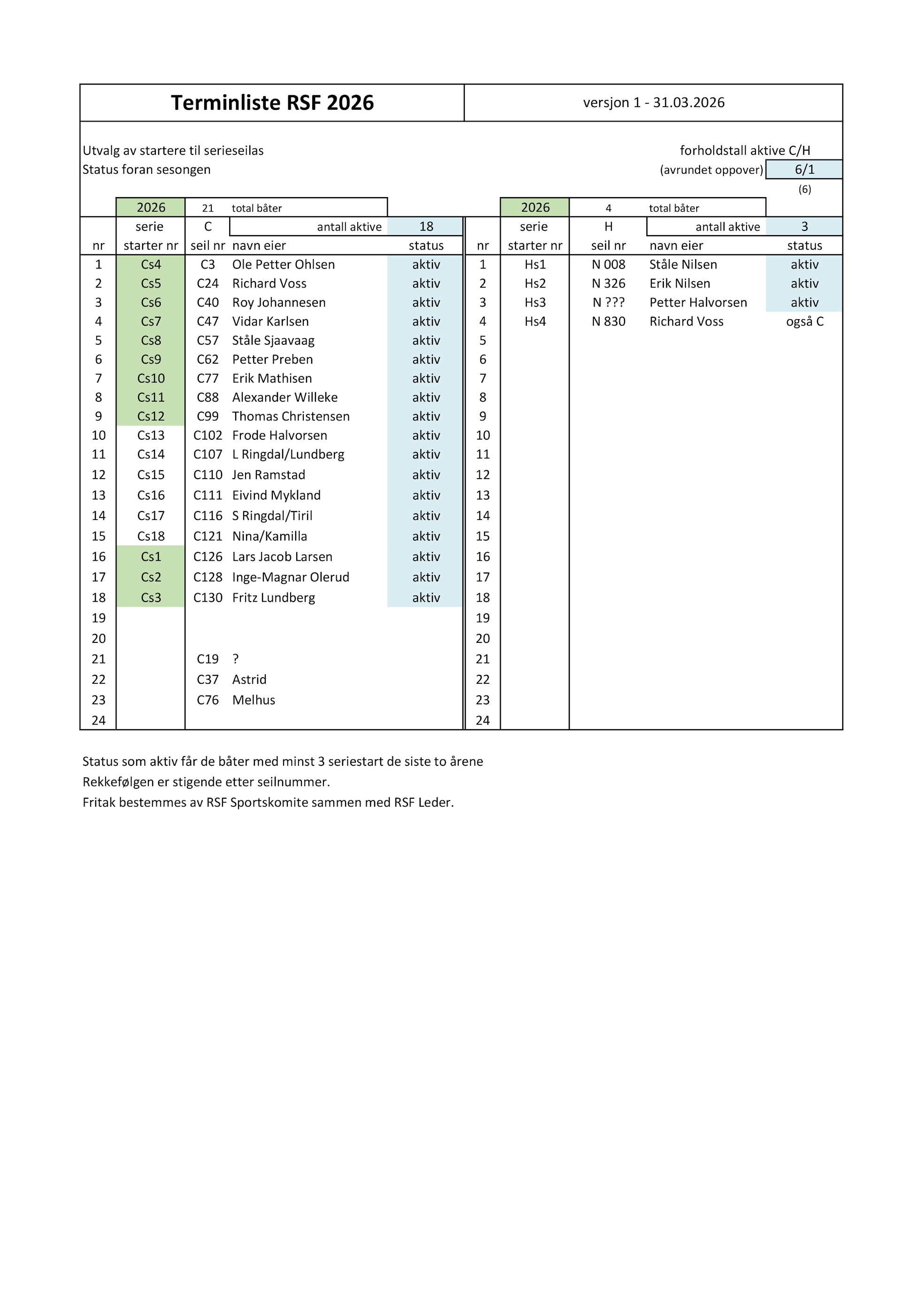 Terminliste RSF